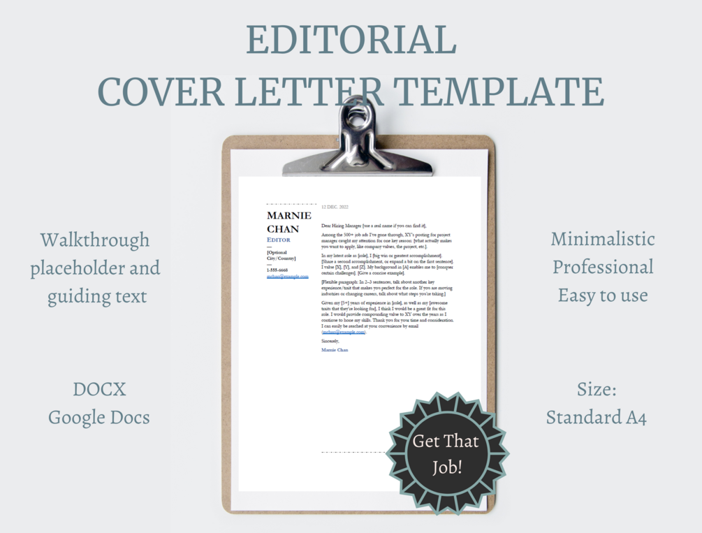 Editorial-inspired Cover Letter Template for Writers, Publishers, Journalists, Editors | Professional, Concise | Get That Interview